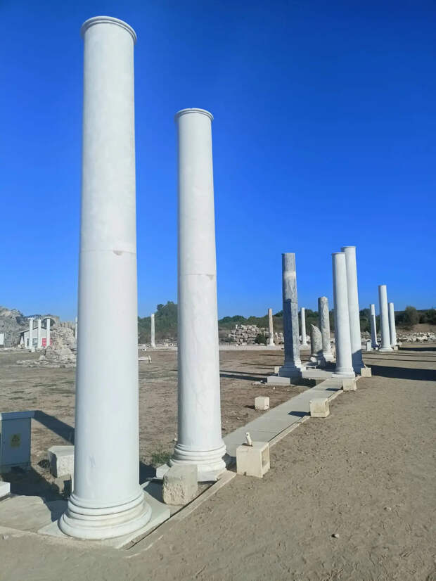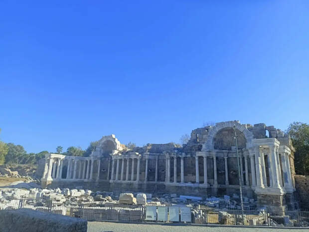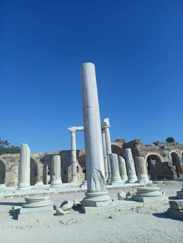 Интересных памятников древности в городе много. Это и храм Аполлона, от которого сохранилось несколько колонн. И городская крепостная стена с зубцами и внутренними арками. Раскопали римский театр, вмещавший более 20 тысяч зрителей. Кстати, самый большой римский театр на территории Турции. Была очищена и главная улица города, которая проведет вас по всему полуострову до самого западного его конца.